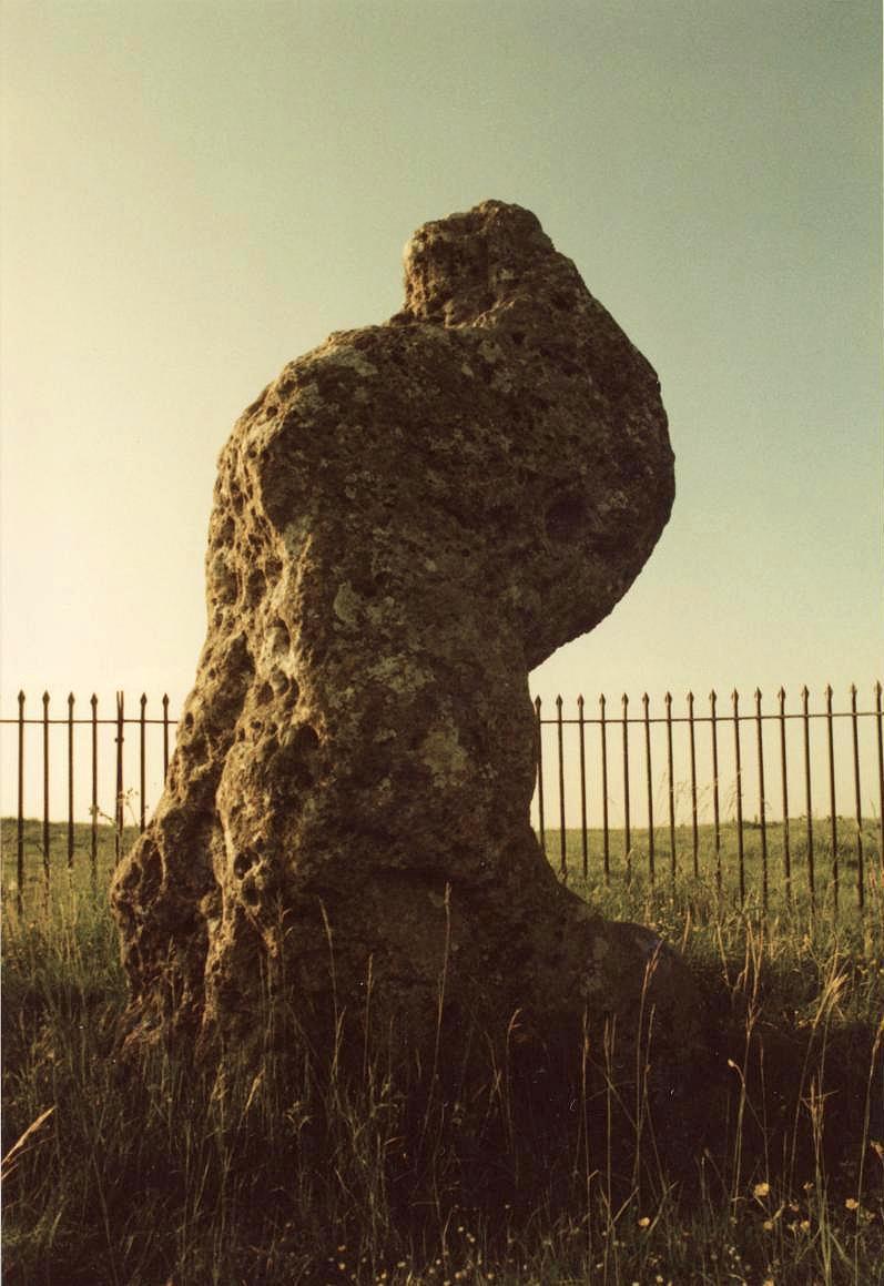The King Stone (SP 296 309) is a crooked monolith positioned some 240 ft (73 m) to the North-east of the stone circle; it is in fact sited in the neighbouring county of Warwickshire. The stone is 8 ft (2.5 m) tall and 5 ft (1.5 m) wide and, like the Knights, is surrounded by railings. The monolith is thought to have served as a marker-stone for a cairn cemetery which dates from the Early Bronze Age.