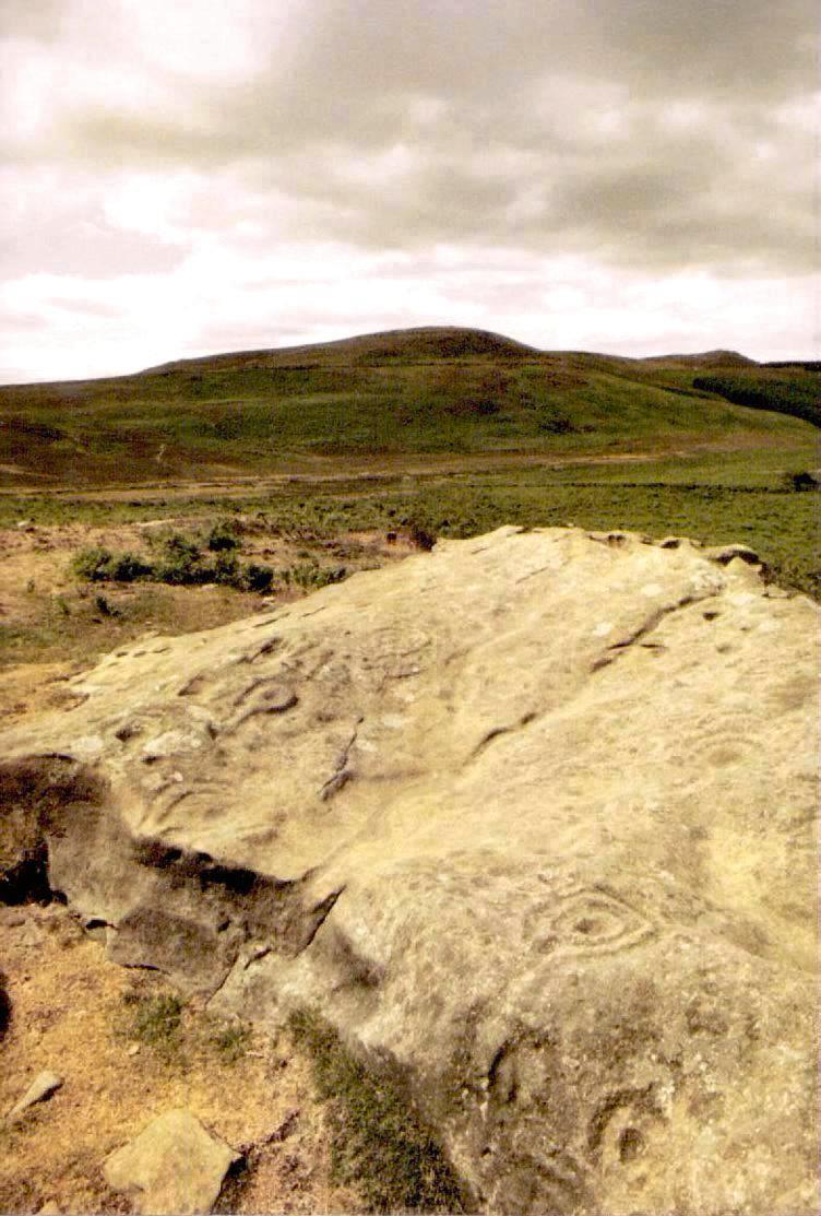 On open moorland close to Lordenshaw hill fort (NZ 054 992) are two rocks inscribed with cups, rings and grooves.