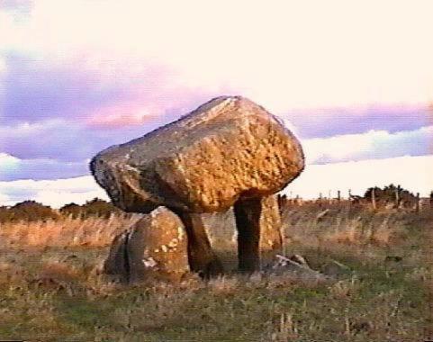 Three orthostats standing 4 ft (1.2 m) tall support a wedge-shaped capstone 10 ft (3 m) long, 6½ ft (2 m) wide and ca.4 ft (1.2 m) thick. A fourth stone lies prostrate nearby, which may originally have been a fourth upright, according to a 1693 account of the site. The chamber is orientated just to the South of East.