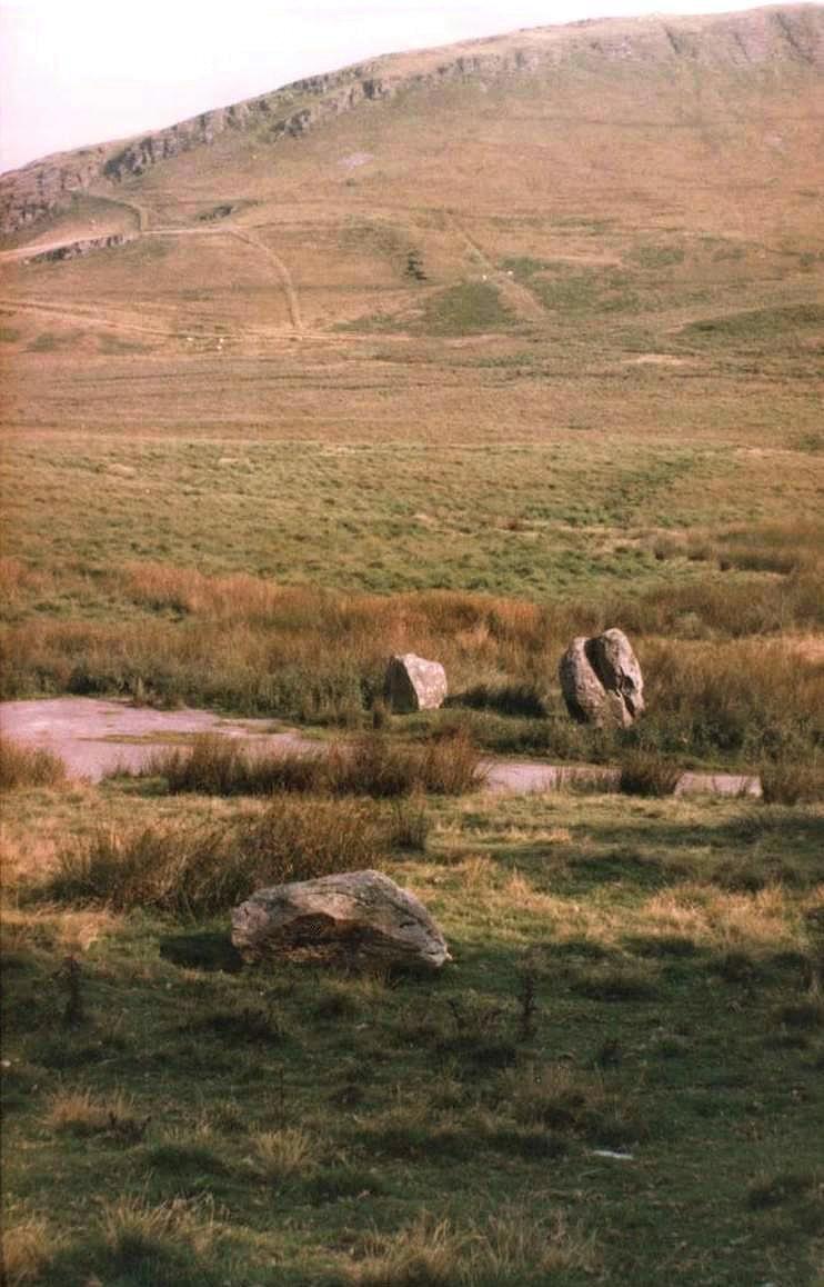 It has recently been suggested that these stones may have been waymarkers for a Bronze Age trackway which once led from the West coast (near Aberystwyth) into the lower slopes of the Plynlimon mountain range (to the North-east of the site). There are numerous standing stones in the region, which appear to define the route of the proposed trackway.