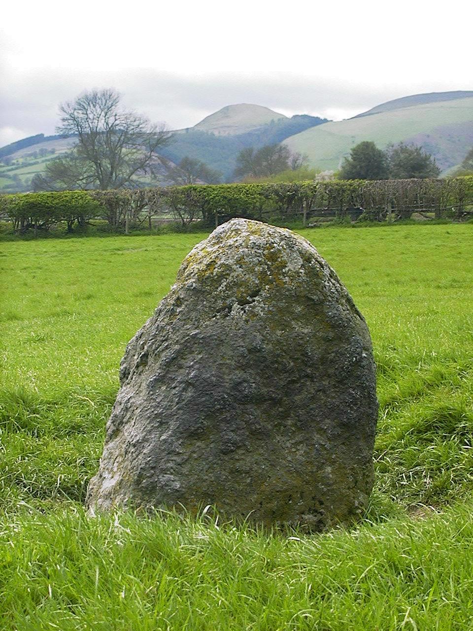 One of two standing stones near Kinnerton, a village in the pleasant Vale of Radnor 2.4 miles (3.8 km) North-west of New Radnor. The stone is situated in a field just South of a minor road leading from the village.